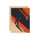 Detta ishockey-tema vykort har en mörk färgpalett med en illustration av en ishockeyspelare som åker snabbt. Detta är en bra design för unga idrottare.