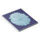Det här anteckningsblocket i fantastisk innehåller ett foto av en marigold blomma som har manipulerats för att göra den till en isig blek blå färg. Blomman sitter på en mörk blått bakgrund.