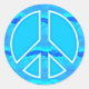 Ett briljant blått fredstecken i blues och vitt. Jag brukade arbeta på ett kvinnohärbärge och vi främjade ett fredsbudskap i alla personliga relationer. Fred börjar hemma. Var snäll mot barnen.