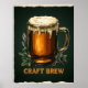 Den här bilden visar en grov mugg fylld med bäraröl av bärarfärgad, försedd med ett tjockt, frostigt huvud. Grönt löv och löv runt basen i mugg, vilket ger en aning naturlig färskhet. Den övergripande bilden ger upphov till en känsla av förnyelse och hantverksmässig kvalitet på hantverksbryggeriet.
