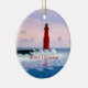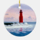 Från en akrylmålning av Brenda Thour av den Algoma Pierhead fyren i Wisconsin på Lake Michigan.