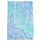 Vattenfärgpenslar som är uppdelade i geometriskt kristallint delar för ett sömlöst glaciärt utseende i pastellövertoningar av ljusblått och lila.