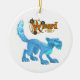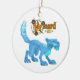 En julprydnad som presenterar iskatthusdjuret från onlineleken Wizard101.