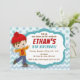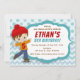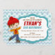 Ta på dig skridskorna och gör dig redo att fira en födelsedagsfest med denna fantastiska inbjudan! Har chevron- och prickmönstrad bakgrund med en stilig söt isskridskoåkande pojke med röd mössa.