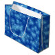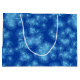 Stjärnliknande sprängningar av iskristaller med snö mot en djup blå himlar-bakgrund på kvällen