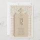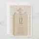 Ställ in en regal ton på din bröllopsmottagning med det här lyxiga bordsnumret-kortet, inspirerat av den arabiska designens krångliga konst. Kortet visar en utvecklad elfenbenstorn med snurrande mönster som påminner om traditionell Mitten Östra konst, som ställs mot en rik taupe canvas. Attraktion, ett stort bordsnummer, visas i ett djupt espressoteckensnitt som är både fet och elegant. Det finns två klassiska kolonner som har lagts till med ett örningsben mönster i elfenbensnyans och beige, vilket ger en subtil kontrast till den mjuka taupbakgrunden. Kortet är inte bara en praktisk guide för gästerna utan också en konstverkets biet som berikar bord med sitt kulturskönhets- och neutralt färg-program.