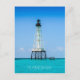 Florida fyr vid Alligator Reef vid Islamorada, detta historiska ljus ligger nära Matecumbe Nycklar i Florida Nycklar och är känt för båtar och fiskentusiaster från hela världen. Den svarta och vita fyren i järn visas i detta foto på den vackra tealen vatten i Nycklar under en solig Florida himlar.