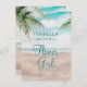 Island Breeze Målad strandscen, med havsvågor, sandstrand och palmer, med en vacker tealblå himmel. Med moderna typsnittsfonter. En sommar tropisk strand, eller destination wedding design - Personlig wedding Will du vara min Blomsterflicka förslagskort!