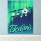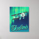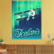Island vintage stil Travel-affisch för norra ljus och ett lätt flygplan som flyger förbi.
