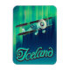Island vintage stil Travel-affisch för norra ljus och ett lätt flygplan som flyger förbi.