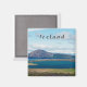 Island morgon sjölandskap med gårdar i en fjord magnet