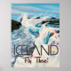 Island Vintage resor Poster reseaffisch för Island på återresan. Isländska tecknadens reseaffisch. Besök Islandet.