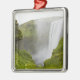 Island. Skogarfoss Vattenfall störtar över en Julgransprydnad Metall