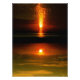 This is a photo of a sunset taken on Vancouver Island in British Columbia, Canada. The illusion is set with two glowing suns as mirrors across a calm, orange-hued sky. The reflection creates a surreal atmosphere, blending the colors of dusk and twilight.