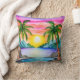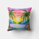 Escape to a glowing shoreline with this Island Tropical Beach Sunset design. Two palm trees frame a calm lagoon and distant mountains as the sun sinks into the water, flooding the sky with rich pink, orange, and golden light that melts into cool turquoise and violet hues. Bold, saturated color and soft gradients give the artwork a dreamy vacation-poster feel, capturing the relaxed warmth of an evening on a quiet island coast.