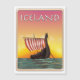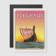Island Viking Travel-affisch, med en lång frakt på havet under solnedgången.