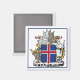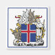 Jacka av arm av Island. Jackat av arm av Island visningar en silver, röd kor på blå sköld. Detta gäller den isländska flagga utformning. Anhängarna är de fyra beskyddarna av Island (landvttir) som står på ett pahoehoe lava-block.[Nödvändig citering] Tjuren (Griðungur) är beskyddare av sydvästra Islandet, örnen eller griffinerna (Gammur) skyddar nordvästra Islandet, draken (Dreki) nordöstra delen och Sten-jätten (Bergrisi). Skyddet för sydöstra Islandet. Islandets varelser respekterades Underbart, så till den grad att det fanns en lag under Vikings-tiden om att ingen frakt skulle bära grimmande symboler (oftast dragonshuvuden på fraktens båge) när man närmade sig Islandet. Det var för att skydda inte provoceras i onödan.