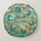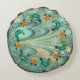 Juldekorationer den gamla röda och grönten krock med din dekoration eller bara tråka ut dig? Ta en titt på den här coola- och lugnande färg-paletten med akvarium, elfenben, teal, khaki, guldbrun och gult, som användes med en originell design med blekt vitt snöflingor som var nere på det snurrande vattenen nedanför, fryst mitt i rörelse, medan en snöstorm av folkkonsfåglar, gingerbröd, tomkakor och blek blå kvistar gör sig runt i Dekorativ kudde. Anpassadets bildtext längst fram.