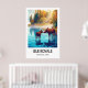 This travel poster blends clean composition with rich color and illustrative detail, making it a striking statement piece for any space. Whether displayed in a living room, office, cabin, or lake house, it brings a sense of adventure and quiet wilderness into your home.