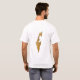 En redigerbar titel och slogan åtföljer den blå hexagram på ett vitt band med blå och vita band ovanför och under den israeliska flagga på framsidan av denna t-shirt. Baksidan visningar ett detaljerat karta i Israel.
