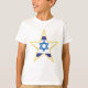 give your son a look he can be proud of with this boys t-shirt featuring a striking star of david graphic. the design highlights a unique five point star with a gold bordered edge and the classic blue white stripes of the israel flag. comfortable and durable for all day play this top allows young boys to display their jewish pride and hebrew heritage at school or community events. it makes a wonderful gift for birthdays or holidays and serves as a meaningful zionist emblem for the next generation. let him represent the holy land with this bold religious symbol.