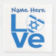 Personlig napkins har ord KÄRLEK i blå brev med en hjärtformade flagga av Israel för O. papper för Hanukkah party eller jul för familjer med Underbar religioner. Roligt för familjeåterföreningar, resegrupper och klubbar.