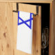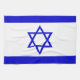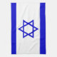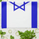 Israels officiell flagga. En blå stjärna av David på vit bakgrund, mellan två vågrät blå rand.