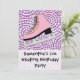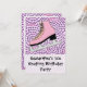 Sött rosa isskridsko med rosa och lila virvlande bakgrund. Perfekt för den lilla flickans isrinkfödelsedagsfest eller annan händelse på isen. Copyright © www.CustomInvitesOnline.com