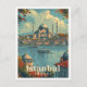 Istanbul Turkey Vintage Art Travel Illustration Vykort