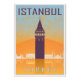 Istanbul vintage poster in orange and blue textured background with skyiline in white
