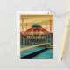 Ta med det här vykortet för vintage det tidslösa charmet från Istanbul. Med illustrationer av ikoniska landmärken som Hagia Sophia, den blå moskén och storbazarernas brinnande gator framhäver denna utformning en nostalgisk känsla av Turkiets kulturella korsning. En perfekt för konstentusiaster och resesamlare.