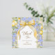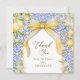 The front of the card showcases elegant coquette and citrus lemons, often depicted with subtle gold accents to enhance the celebratory feel. Softly painted Mediterranean Blue Tile, in hues complementing the overall design, are scattered around the bubbly imagery, adding a touch of romantic elegance. The phrase "Thank You" is presented in a graceful script font, conveying sincerity and appreciation. The overall design evokes a sense of joyful celebration and refined taste, perfectly aligning with a stylish bridal shower.
