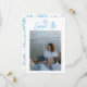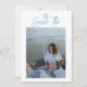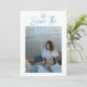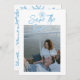 Den här moderna och retro-Medelhavsmodellen med kursiv Bröllop spara datum är underbar för dig. Om du är tittar för en söt, elegant och enkel att anpassa Bröllop spara datum-mall .En mycket elegant enkel och chic himmel-blå vit, vit, vit, vit inbjudan från bröllop spara datum med blankad nyans. Med minimal blå färg sparar du datumet med fet stil i skrivstil på vanlig vit bakgrund och hand plockade vintage blommigt ram. Och anpassadets foto på baksidan. Ta tag i snyggten bröllop spara datum och gör inbjudan verkligt engagerat.