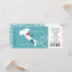 En bröllopsinbjudan om roligt men snyggt i ett boardingkort/biljett stil för par gifta sig utomlands i den vackra Italien i land som visas i en vit karta silhuett på tårblått med sött rött kärlek hjärta, Luft flygplan silhouette och vitt pärlor som snurrar in i en hjärtform. Baksidan av boardingkortet har en söt elegant tidigare mönster.