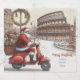 Den italienska etiketten från vin vid jul är den enkla perfekten Julhälsningar. Watercolor-designen har Jultomten i Italien Roma med sina presenter med ett elegant-skriptteckensnitt med handskrivet stil. Anpassa kortet med ditt namn och året.