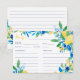 Elegant avslappnad skrift bröllopsdusch med modern kalligrafi typografi och italienska stil citroner frukter, grönska och blå blomster vattenfärg krans bakrecept kort