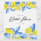 Elegant italiensk citron- och blå blomsterbröllopsinbjudan med skrivstil. Perfekt för sommar-, trädgårds- eller Amalfi-kustinspirerade evenemang. Redigerbar och stilfull!