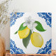 Med livliga citrondesigner på en blå och vit bakgrund fångar denna keramiska plattan charm från Medelhavsstil. Den är väl lämpad för väggaccent, dekorativa paneler, nischdisplayer, trissor och andra kreativa inomhusapplikationer.