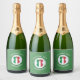 Vin eller flaska för helgdag-gåva ge, eller juldekoration party, har vår ängel på Italiens flagga. Den italienska Flagga julängel finns i en vit, otydlig kvadratcirkel. Bakgrunden är en grönt fyrkanter med ojämnheter. Lägg till din egen text eller anpassa den med namn och året. Flagga är en trifärg av rött, vitt och grönt, som ofta kallas IL Tricolore.