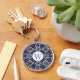 Italienska Azulejo Blue White Geometric Monogramme Rund Silverfärgad Nyckelring