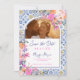 Italienska blå plattor, vattenfärg, blommigt bröll spara datumet