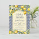 Italienska blå plattor, vattenfärgscitron, babysko inbjudningar