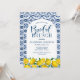 Italienska blå vattenfärgen Lemon Möhippa Brunch Inbjudningar