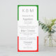 Denna eleganta och moderna meny har ett italienskt tema med en bild av Italiens flagga tryckt i bakgrunden samt på baksidan. Du kan ersätta menyalternativen med de maträtter du väljer. Den är lämplig för en frukost, brunch, lunch eller middag, bröllop, bankett eller restaurang.