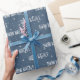Italiensk God jul-text med snöflake och stjärndesign på blå bakgrund. Text kan redigeras.