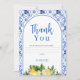 Den italienska Gulten Blommigt Lemon Möhippa Tack för att du kort Medelhavsbrickan och citrontemat möhippa tack för ditt kort med vit ros och ett dekorativt ram.