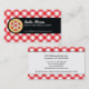 En traditionell röd kontrollerad bordduk är bakgrunden till detta Pizza/italienska restaurang-affärskort. En svart panel markeras med en grafisk bild av en pizza med företaget namn och huvudinformation om dess höger. Resten av affärskontaktinformationen skrivs ut på motsatt sida mot vitt med bordsduken överst och grund gräns. Finns med matchande produkter.