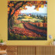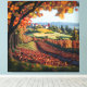 This stunning landscape captures rolling vineyard hills in rich autumn tones, leading toward a charming hilltop village beneath a glowing sky. Inspired by the timeless scenery of Tuscany, this artwork evokes warmth, travel, and rustic sophistication.