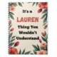 This fun and personalized notebook is made for anyone who proudly owns their name and their personality. Featuring the popular “It’s a Lauren Thing You Wouldn’t Understand” phrase, this notebook makes a playful statement while staying practical for everyday use.