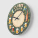 This is a wall clock featuring a dark green border and a light beige face. The phrase "IT'S BEER O'CLOCK" is written around the top and bottom in large, three-dimensional, light-colored block letters. The outer border is decorated with various sizes of illustrated beer mugs and glasses filled with foamy, golden beer. The hands and minute markings are black. The design may look real due to the high detail and three-dimensional texture in the artwork.